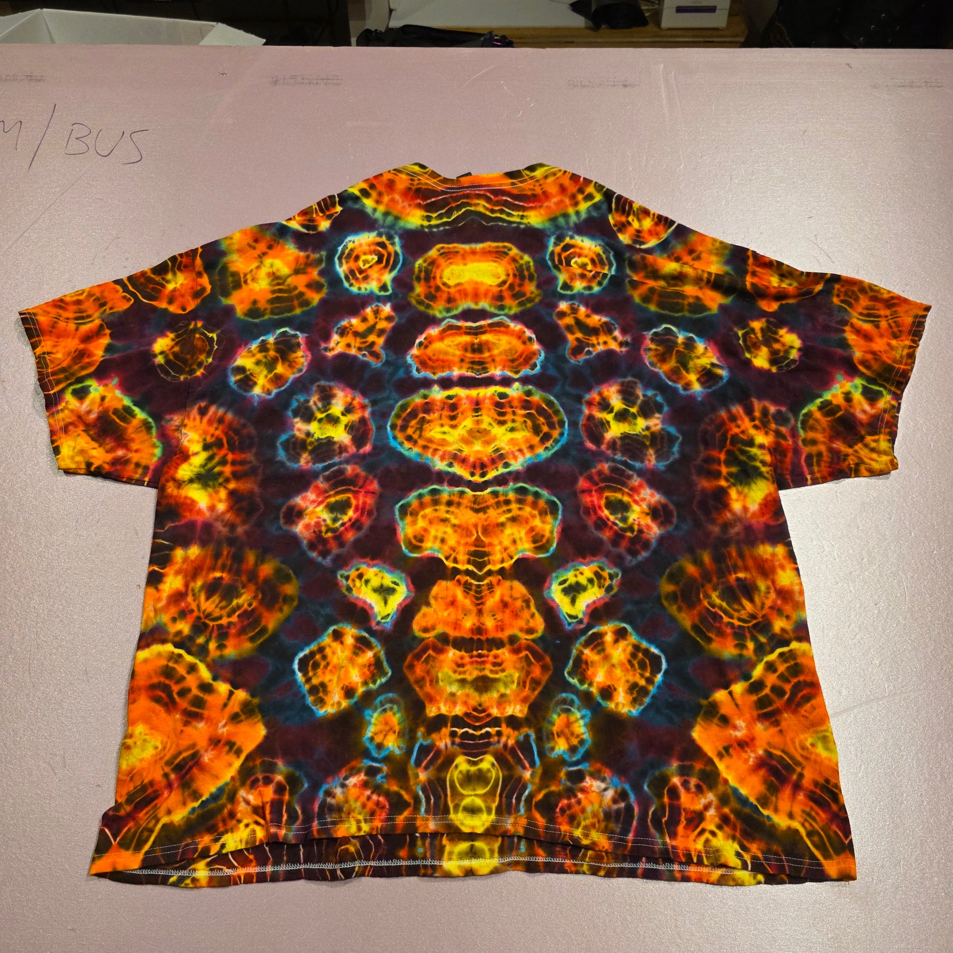 100% cotton shirt tied and dyed by Jason Jones, owner of Found Your Disc. We can add Treasures of the Forest or Found Your Disc logo with our screen printer. Just choose the print add on separately and leave a note if you have a color preference, otherwise it will be white.